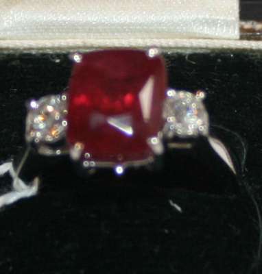 An 18ct white gold mounted ruby and diamond set three-stone ring