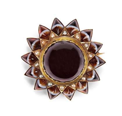 A mid 19th century gold diamond and pearl set brooch