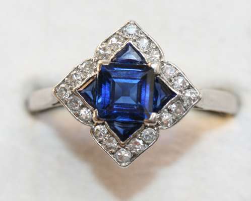 An Art Deco sapphire and diamond cluster ring