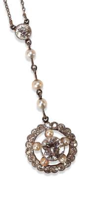 A Belle Epoque seed pearl and diamond set pendant