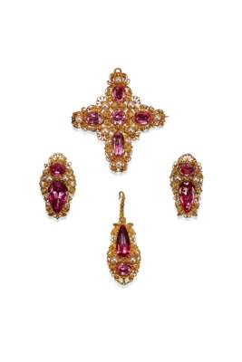 A cased Victorian brooch and earrings set