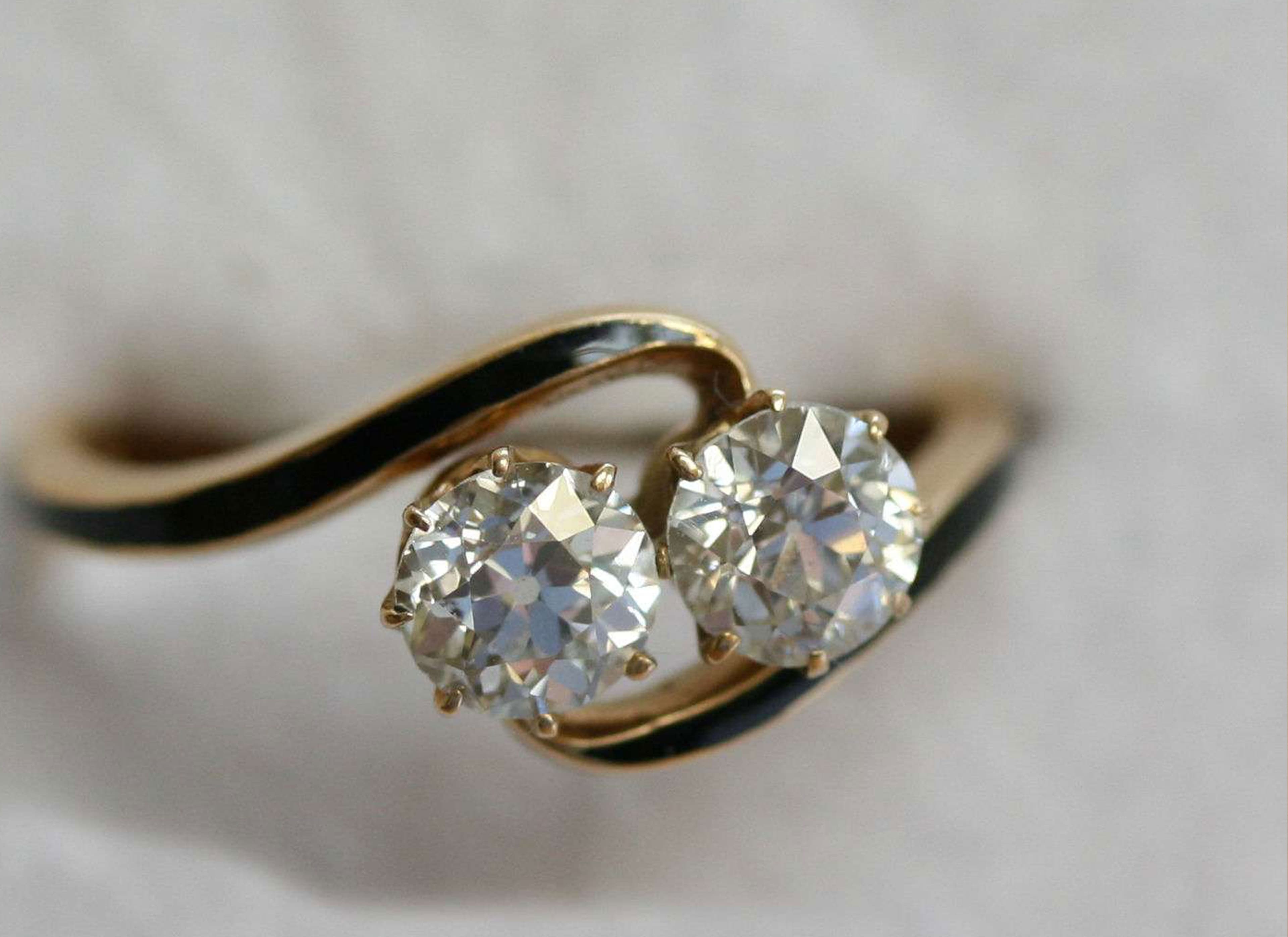 A two stone diamond crossover ring
