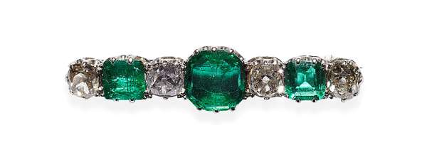 Width 4cm, estimated weights: emeralds 2.41cts; diamonds 2.11cts.
