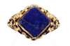with central off-set rounded square cut lapis lazuli panel, within a scroll surround, with hidden hinged key to reverse of central panel and conforming scroll decoration to the shoulders