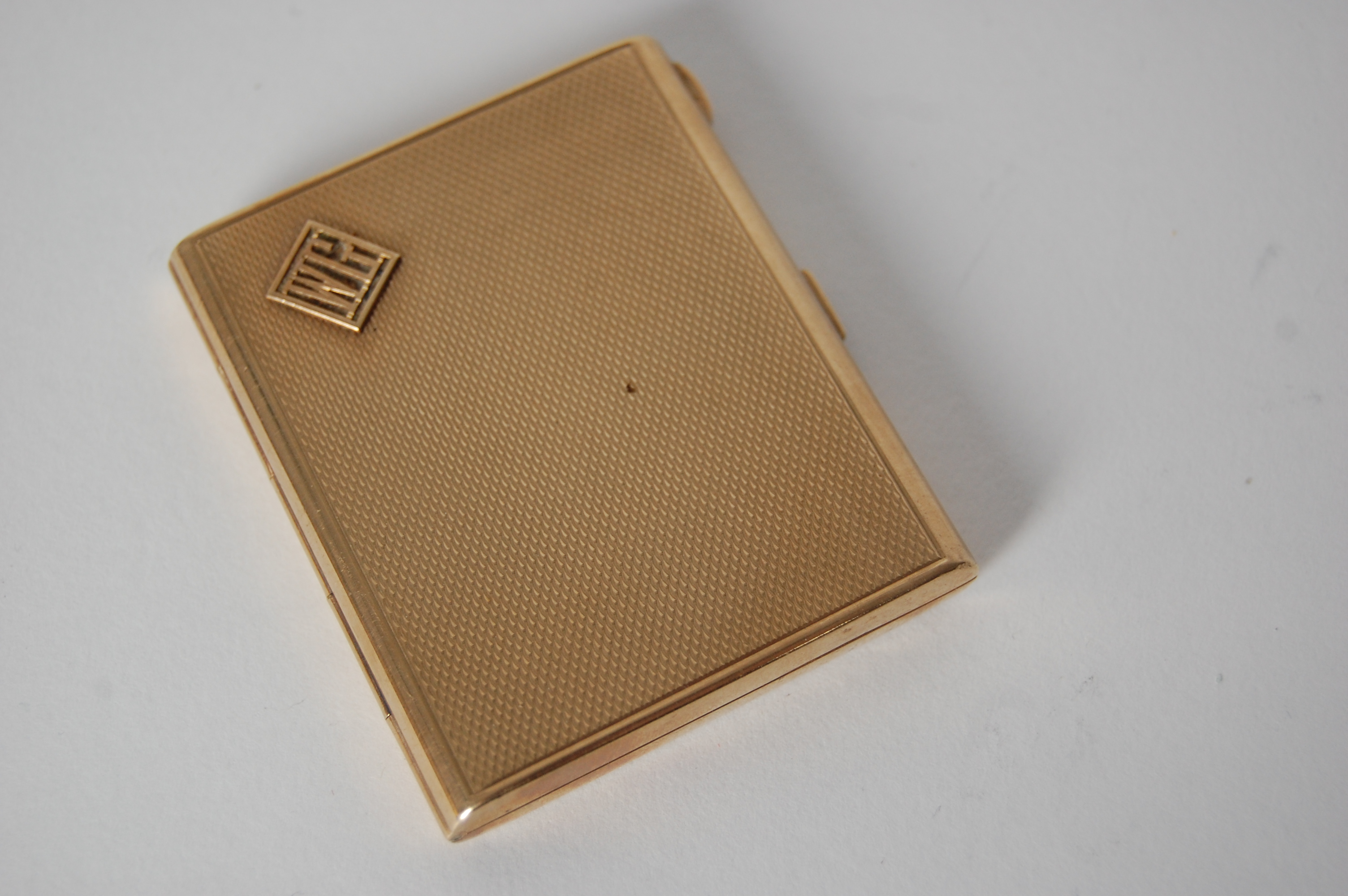 Asprey of london 1931, of rectangular form with engine decoration with applied initials 'WG' to cover, the interior fitted for match book