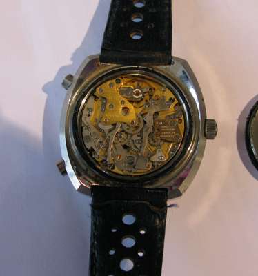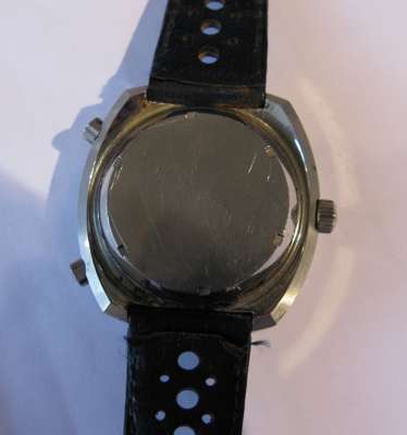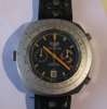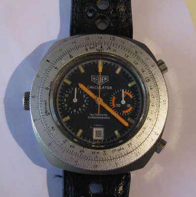 Calculator model, 1970's, circular blue dial with circular slide rule to the bezel (spare ring), luminous hands, chronograph and date dials, sweep second hand, original leather strap