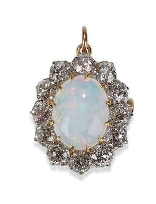 An Edwardian opal and diamond set brooch/pendant