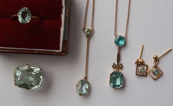 A group of aquamarine set jewellery to include