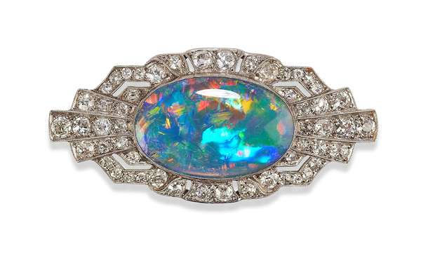 An Art Deco black opal and diamond set brooch,
