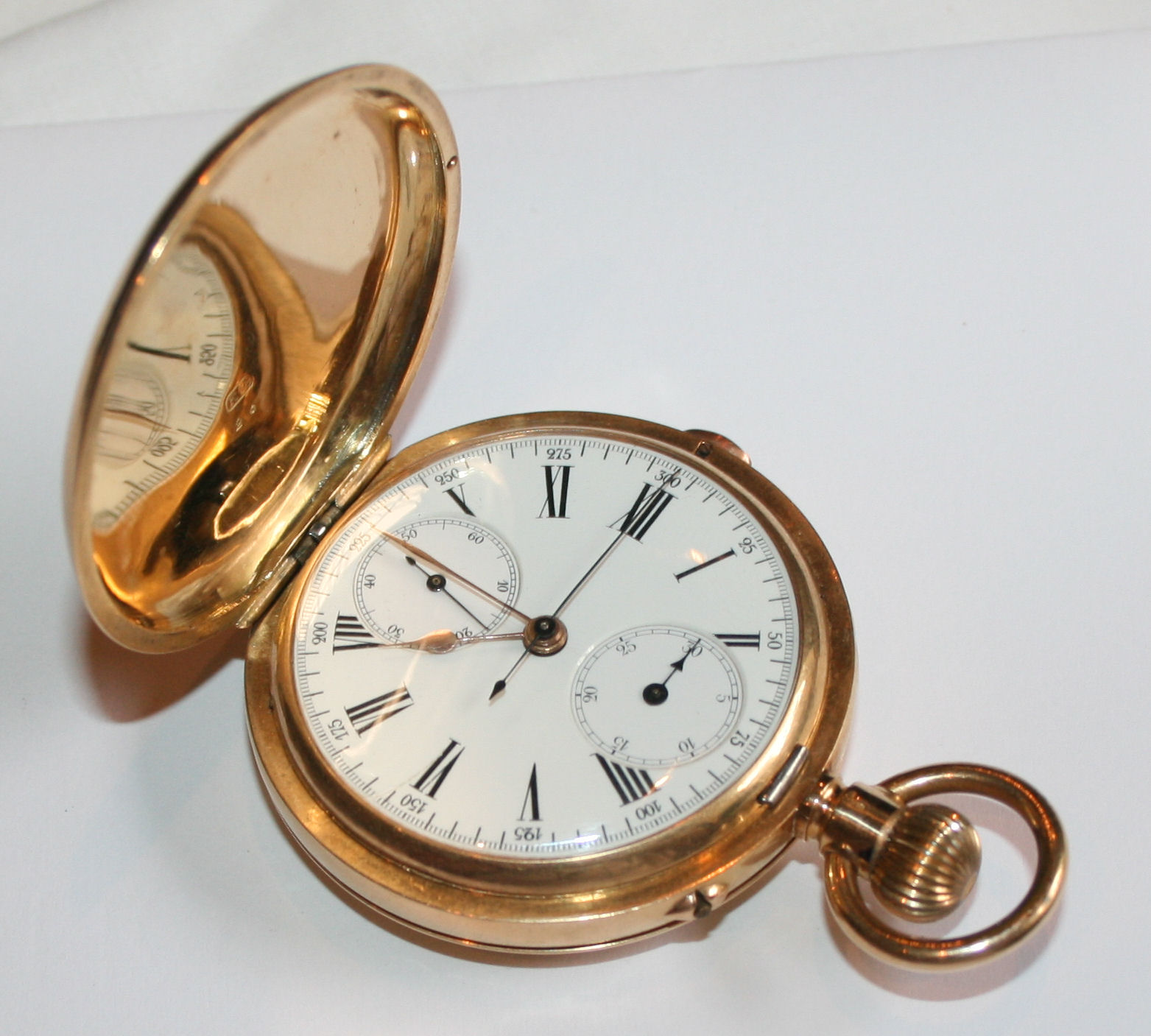 in full hunting cases, plain, enamel dial, lever movement