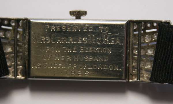 The case engraved ' Presented to Mrs Charles McRea upon the election of her husband as Sheriff of London 1936'
