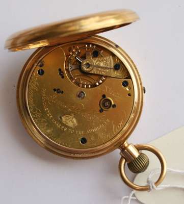 open faced, keyless wind, the enamel dial with subsidiary seconds dial, and up/down dial and inscribed 'James Poole London No. 6311' engine turned outer cover with engraved monogram, the inner cover with engraved inscription, three quarter plate lever movement, inscribed 'James Poole, Chronometer makers to the Admiralty, 33 Spencer Street, Clerkenwell, London, No. 6311'
