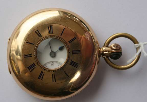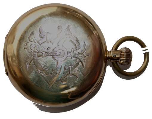the outer case with monogram and enamel numerals, the white enamel dial with subsidiary seconds dial, the lever movement with screw adjustment