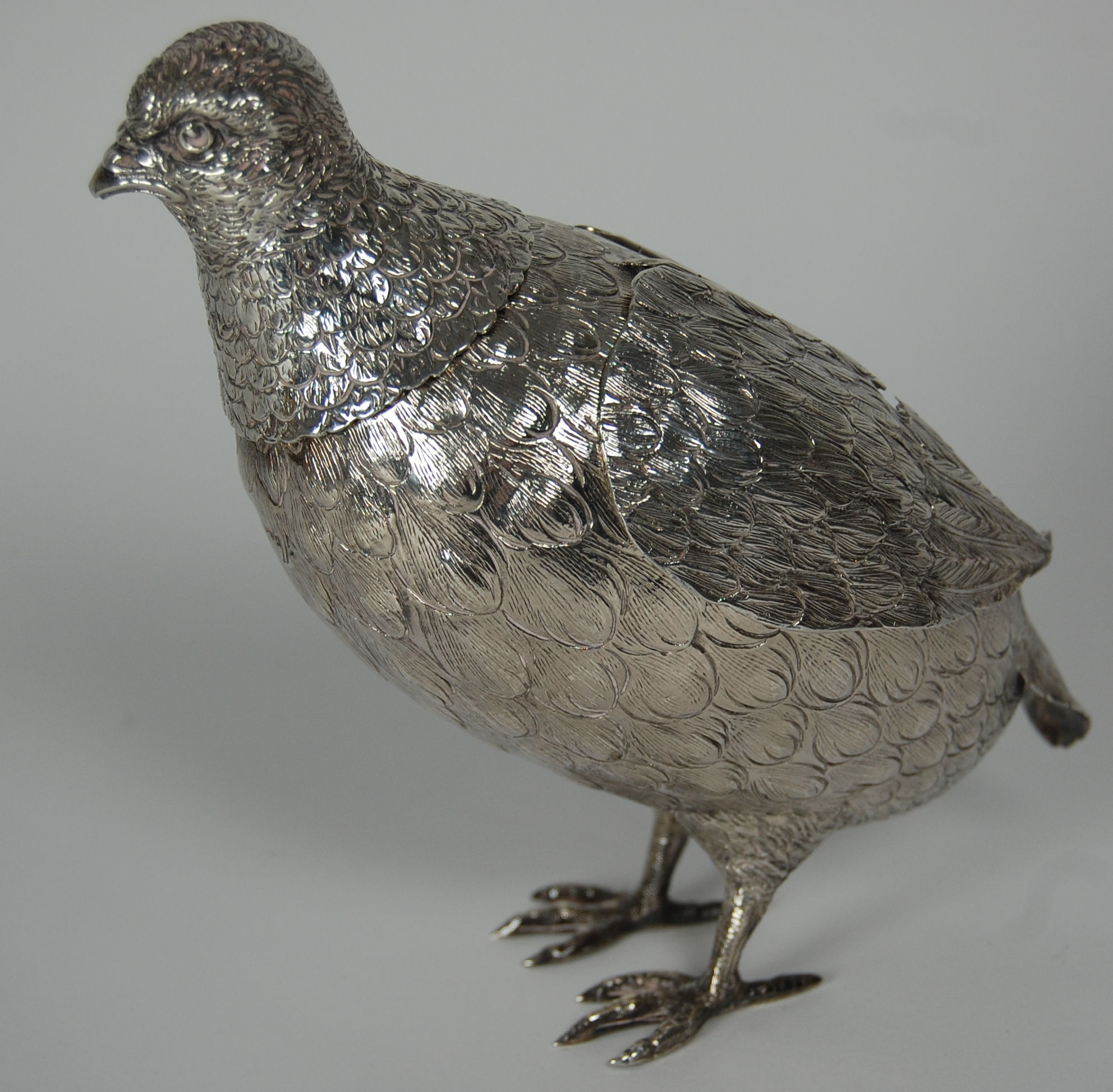 with London import marks 1897, naturalistically formed with engraved feathers, hinged wings and pull off head