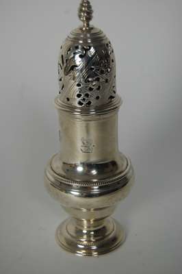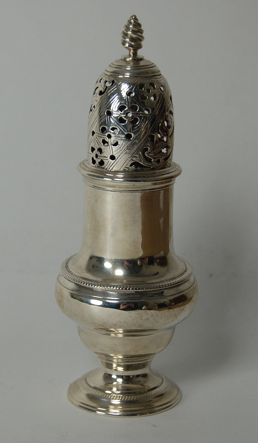 London 1771, of plain baluster form with beaded rim and domed pierced lid