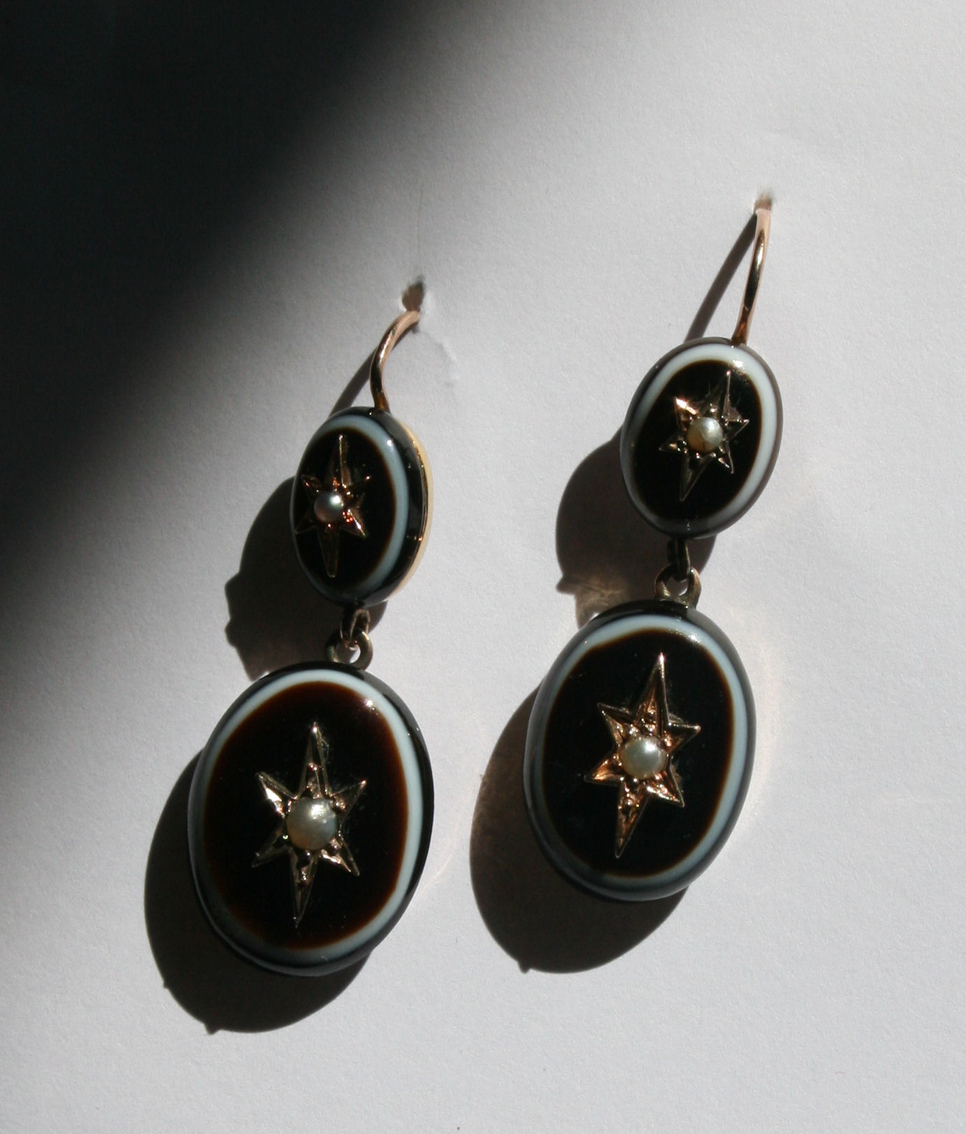wire suspension, with two graduated oval drops, onset gold star with pearl to centre