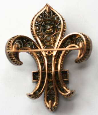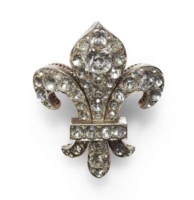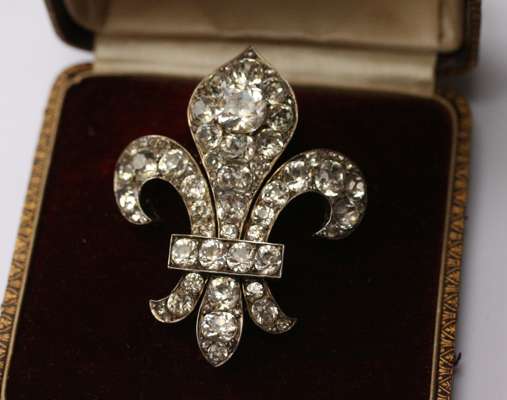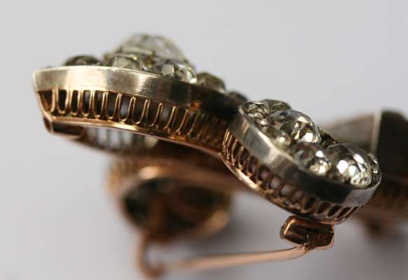 set throughout with graduated old mine cut pastes, with rose cut diamonds in between the larger stones, all set in white metal on a gold well crafted mount, also with capability for a conversion, contained in a tooled maroon leather fitted case