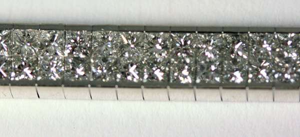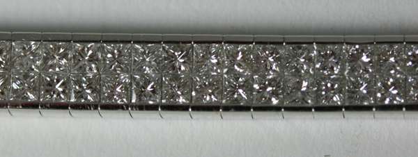 of articulated design, invisibly set with two rows of princess cut diamonds, with concealed clasp and safety clip