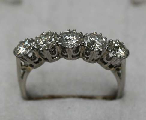 An 18ct white gold and platinum mounted five-stone diamond ring