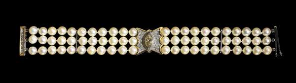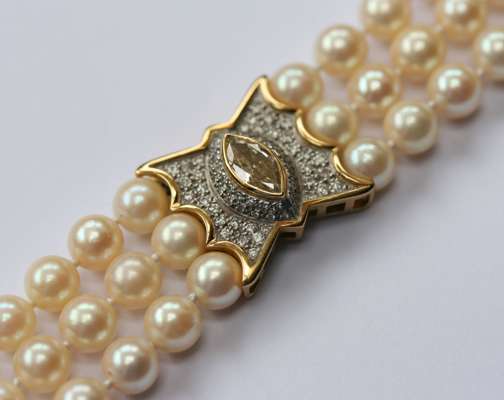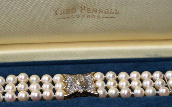 THEO FENNELL - a diamond and cultured pearl three-row bracelet