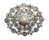of pierced shaped oval design, set to the centre with a pearl measuring approx 6mm diameter, within a floral surround millegrain collet set with graduated old European cut diamonds