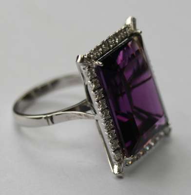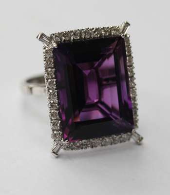 An 18ct white gold mounted amethyst and diamond set cocktail ring