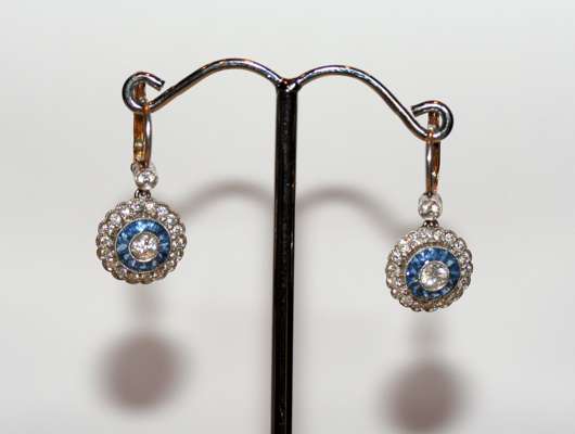A pair of early 20th century sapphire and diamond set pendant earrings