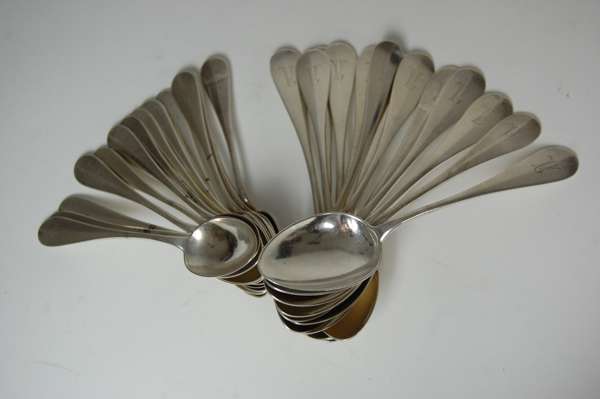 A Russian set of thirteen table and teaspoons