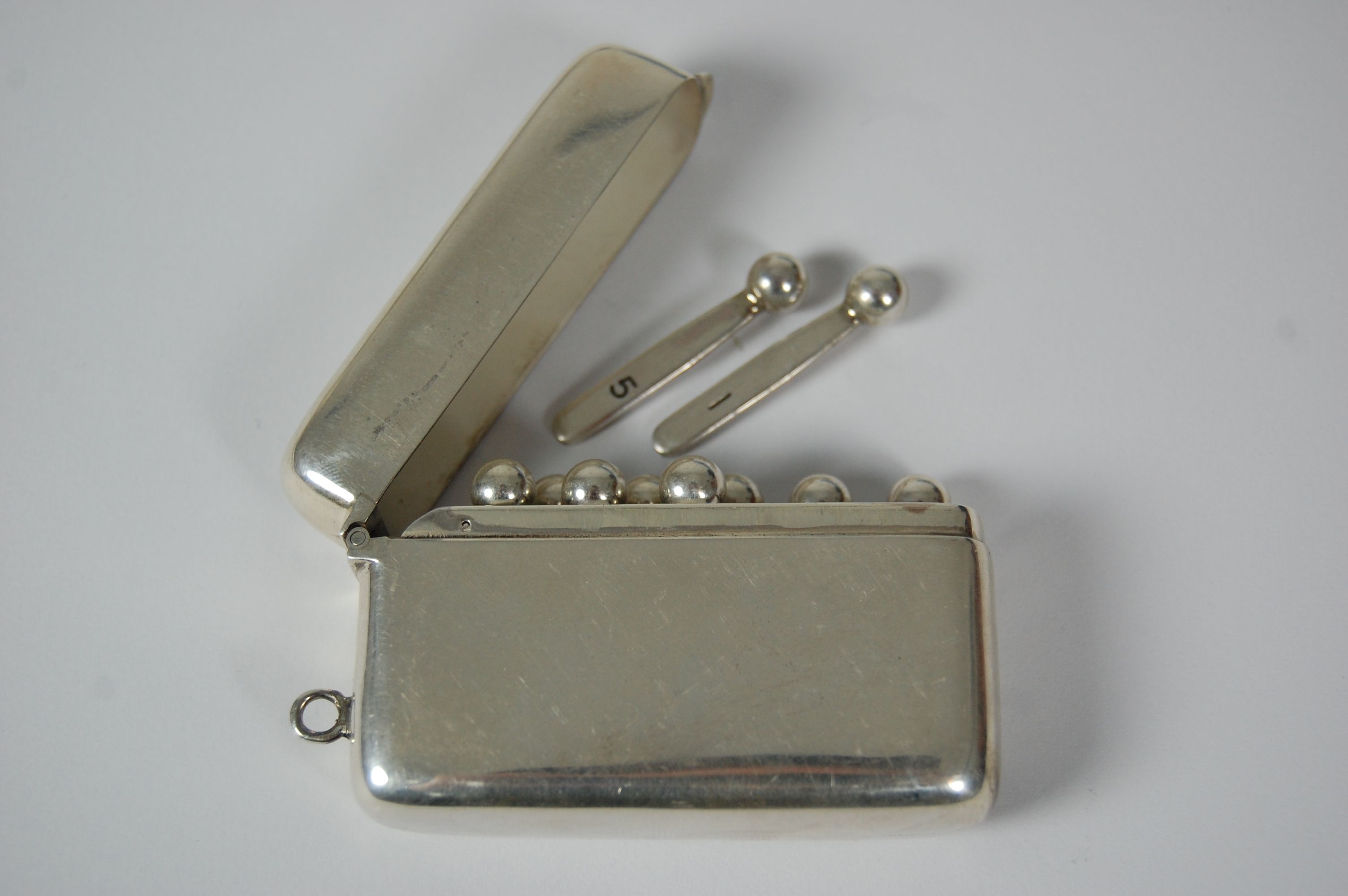 Birmingham 1990, the rectangular case of plain form with hinged cover opening to fitted interior with ten 'match' formed markers with simple engraved numbers