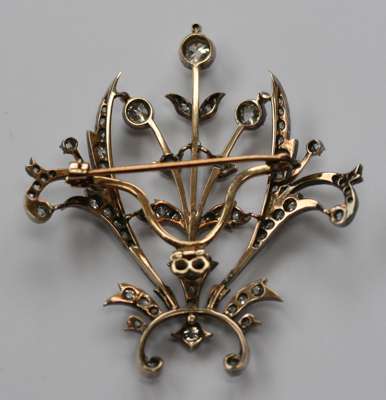 of tapering design set throughout with graduated old European and rose cut diamonds, conjoined by knife bars, with detacheable brooch fitting