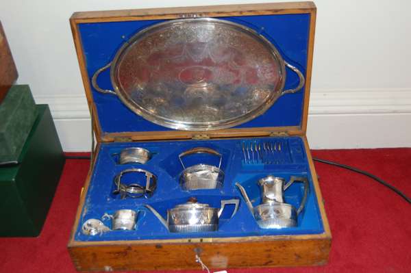 Tray 62cm wide, coffee pot 19cm high, combined weight 130oz