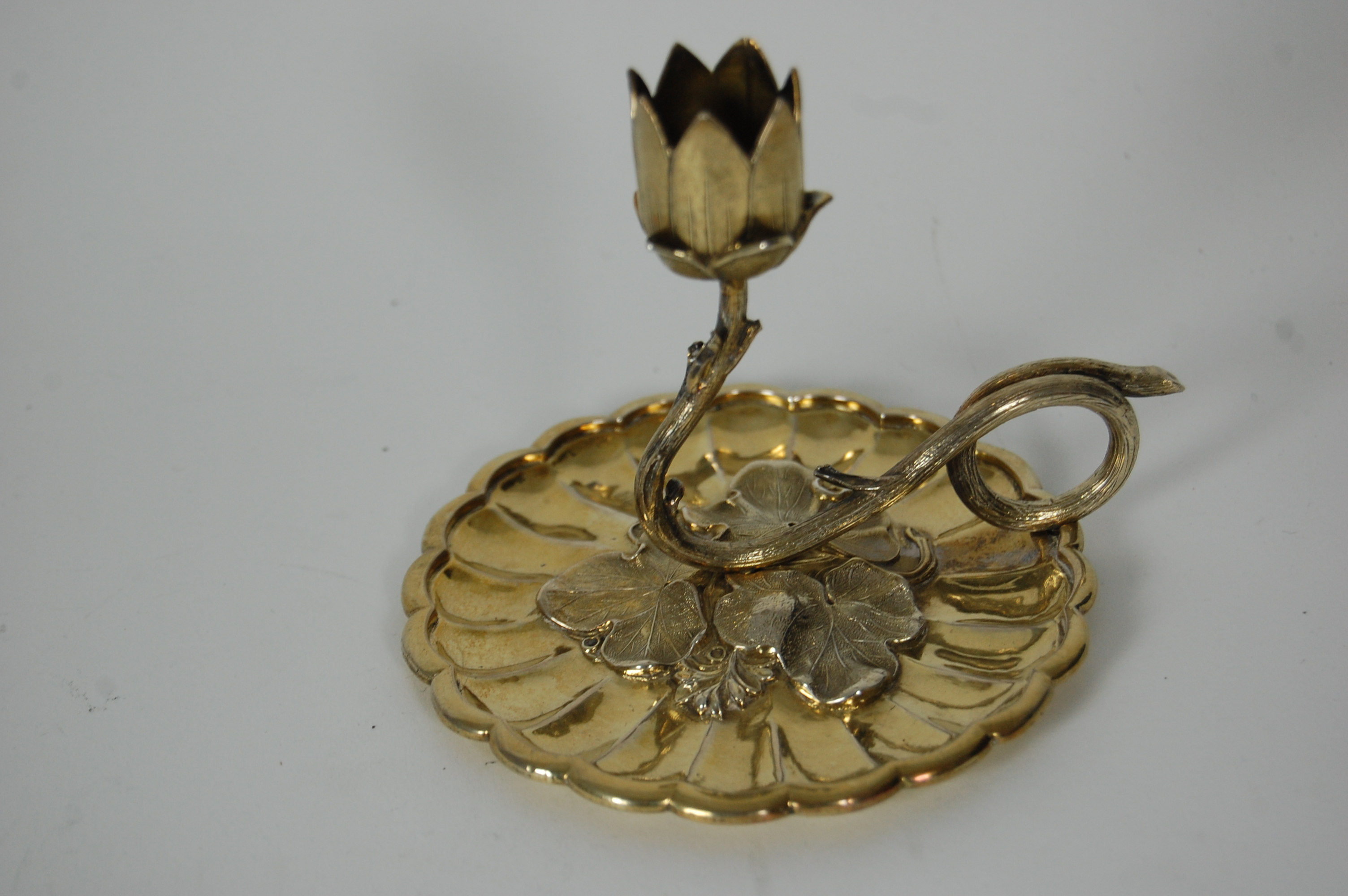 London1826, the scalloped fluted base with naturalisitically formed sconce with branch formed handle and stem with flowerhead sconce