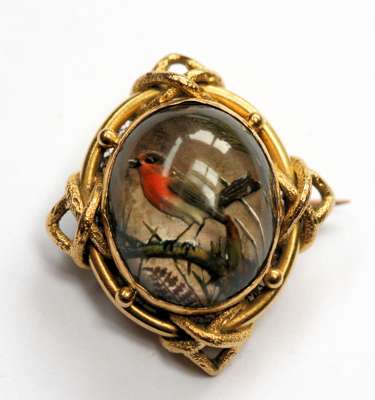 A late Victorian/Edwardian hand-painted reverse crystal intaglio set brooch