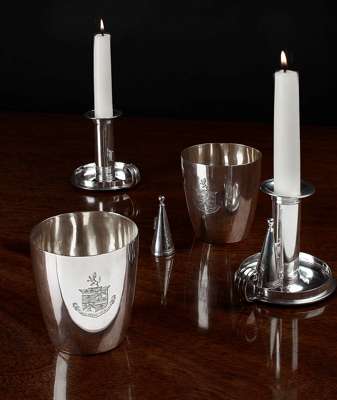 A scarce pair of George III campaign chamber sticks and beakers