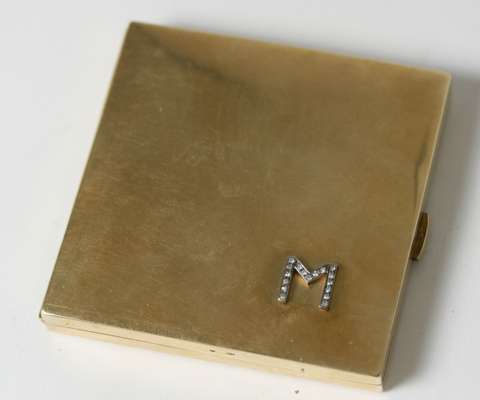 indistinctly marked, maker's mark AvS, of polished square form, with applied diamond set letter 'M'