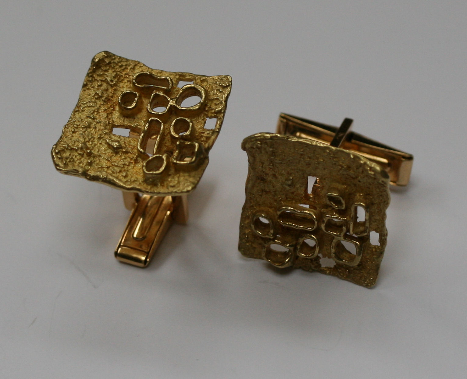 the fronts of shaped square design, assymetrically pierced, with textured finish, with swivelling backs