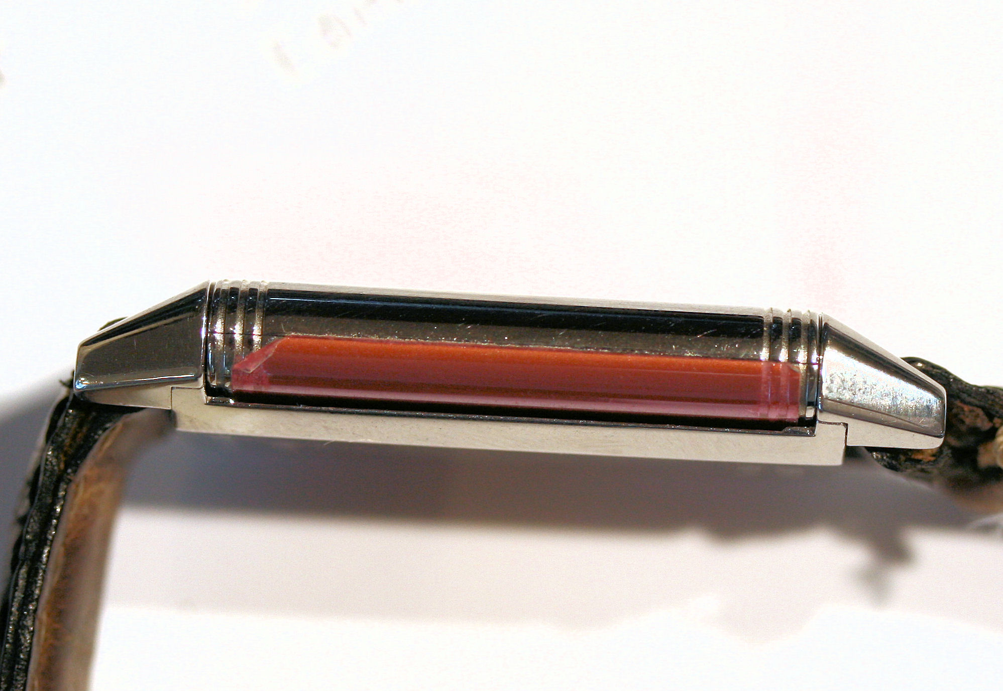 polished stainless steel case, rectangular silvered dial, inscribed, Arabic numerals, reeded bezel, case also inscribed and numbered 250,8.09 and 1654519