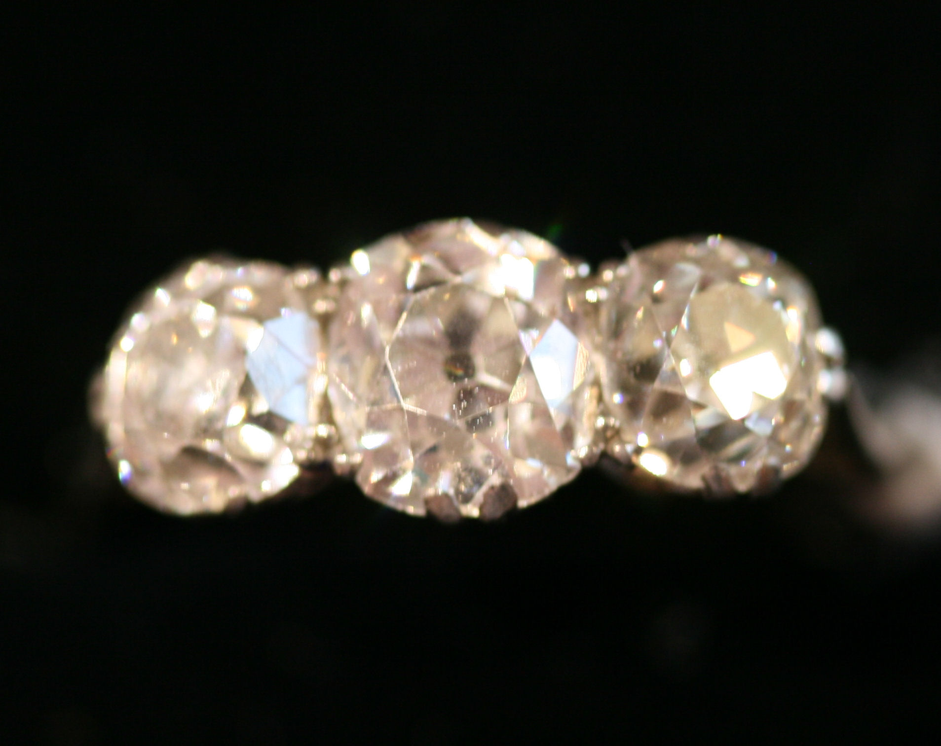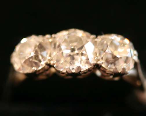 An old cut diamond three-stone ring
