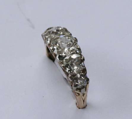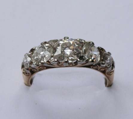 claw set with graduated old European cut diamonds, interspersed by pairs of rose cut diamonds