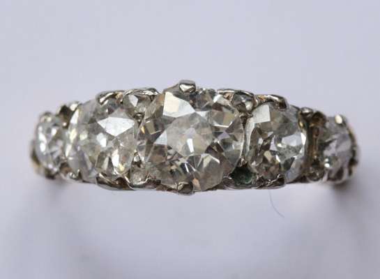A 18ct gold mounted five-stone diamond ring