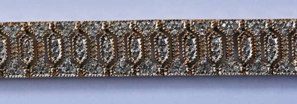 composed of slim hexagonal panels interspersed by slim waisted links, each millegrain set with round brilliant cut diamonds, with concealed clasp and fold-over fastening