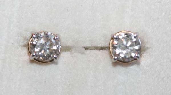 the circular cut brilliant diamonds four claw set in 14K yellow gold, total approximately 1.42cts