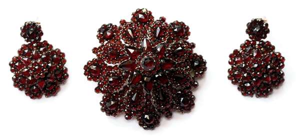 A late 19th century Bohemian garnet set demi-parure