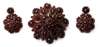 comprising a brooch and a pair of matching pendant earrings, each designed as a domed shaped circular cluster, set throughout with graduated pear and circular rose cut garnets, contained in a fitted case