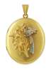 applied to the front with stylised foliage, with textured finish, flanked by a ho-ho bird set with seed pearls and circular cut turquoise and ruby cabochons, with tapering bale