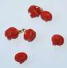 comprising a pair of cufflinks and two buttons, each with oval carved coral terminal, depicting the head of either a horse, hound, deer or rabbit, the cufflinks conjoined by belcher form links
