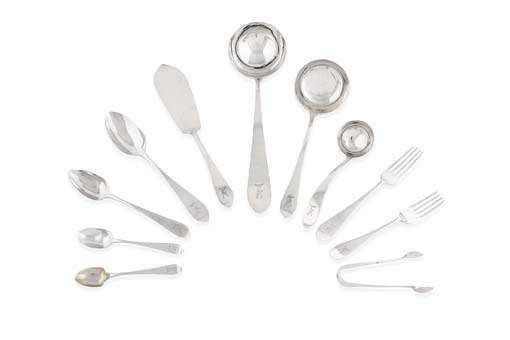 Charles W Fletcher, mainly London 1915, of slender Celtic Point pattern with engraved stags head crest to terminal, comprising eighteen tablespoons twelve table forks thirteen dessert spoons forty one dessert forks fourteen teaspoons thirty coffee spoons twelve icecream spoons two sugar tongs one butter knife two sauce ladles one fish server two ladles (qty)