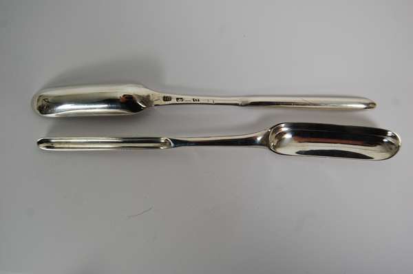 J Gilliland, Edinburgh 1778, both of simple double scoop form with large and small terminals, with central plain handle (2)