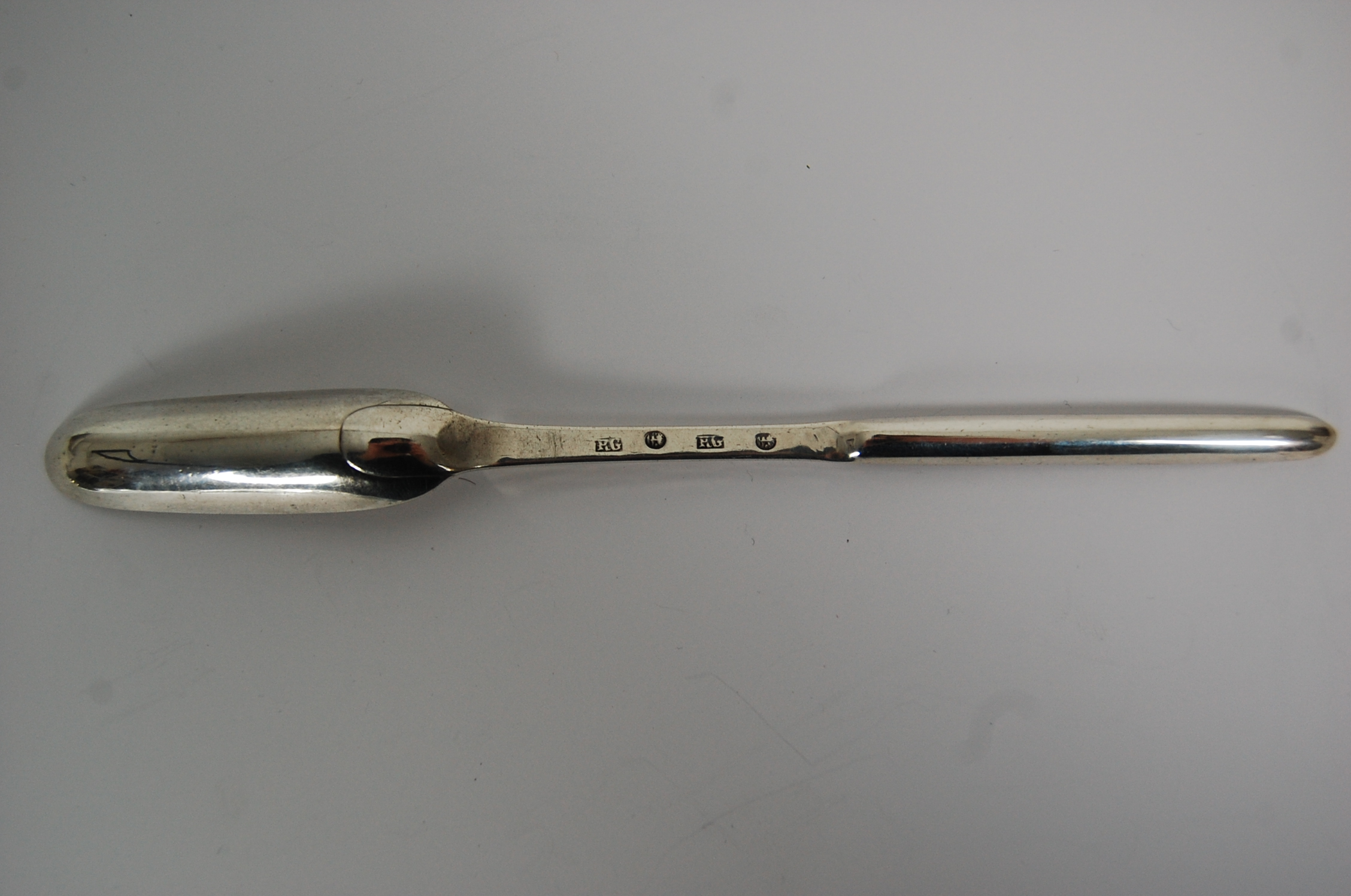 Robert Gray, marked RG, town mark, RG, town mark, of typical form with large and small scoops and simple handle section between