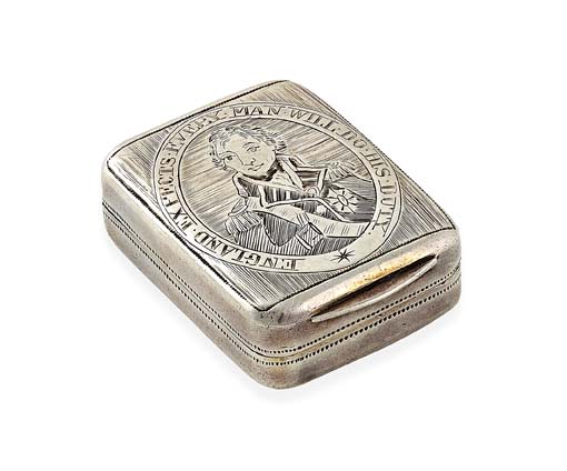 Matthew Linwood, Birmingham 1805, of simple rectangular outline the hinged cover engraved with a portrait of Lord Nelson within an oval cartouche with motto 'ENGLAND EXPECTS EVERYMAN WILL DO HIS DUTY', the gilt interior with hinged pierced grill with Victory and inscribed 'VICTORY TRAFALGAR OCR 21 1805'